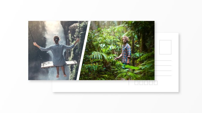 Pohlednice s jednou fotografií na výšku a vlastním textem na zadní straně.